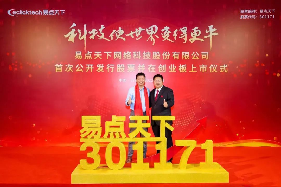 2022年8月19日,文投資本股東易點(diǎn)天下網(wǎng)絡(luò )科技股份有限公司在創(chuàng )業(yè)板上市。證券簡(jiǎn)稱(chēng)為“易點(diǎn)天下”,證券代碼為“301171”。陜文投資本總經(jīng)理霍鵬受邀參加首次公開(kāi)發(fā)行股票并創(chuàng )業(yè)板上市儀式。公司首次公開(kāi)發(fā)行股份總數為75,501,745股,募集資金總額為137,262.17萬(wàn)元。