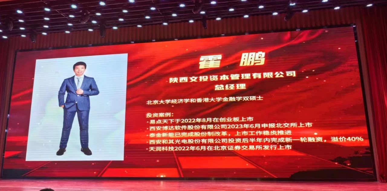 陜西文投資本管理有限公司(以下簡(jiǎn)稱(chēng)“陜文投資本”)作為本次大會(huì )的協(xié)辦單位參加活動(dòng),并榮獲“2023年陜西省創(chuàng )投協(xié)會(huì )最具人氣機構”、“2023年陜西省創(chuàng )業(yè)投資協(xié)會(huì )新銳會(huì )員”,已投企業(yè)泰金新能榮獲“2023年度陜西省創(chuàng )業(yè)投資協(xié)會(huì )優(yōu)秀投資案例”,公司總經(jīng)理霍鵬榮獲“2023年陜西省創(chuàng )業(yè)投資協(xié)會(huì )優(yōu)秀青年投資人”同時(shí)受聘為秦創(chuàng )原總窗口科技金融顧問(wèn)。